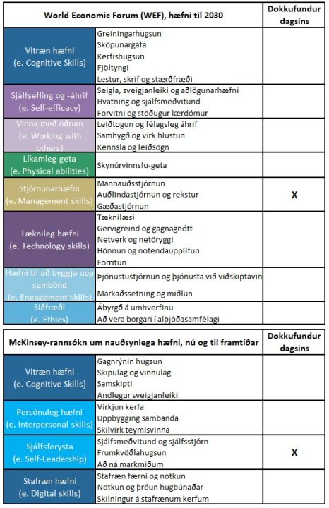 eða þá hæfniþætti sem McKinsey hefur sagt að við þurfum á að halda til að dafna á vinnumarkaði framtíðarinnar og í samfélagi framtíðarinnar.
