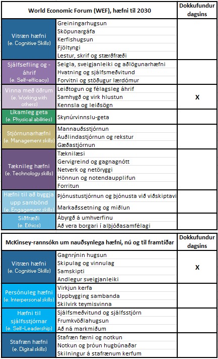 eða þá hæfniþætti sem McKinsey hefur sagt að við þurfum á að halda til að dafna á vinnumarkaði framtíðarinnar og í samfélagi framtíðarinnar.